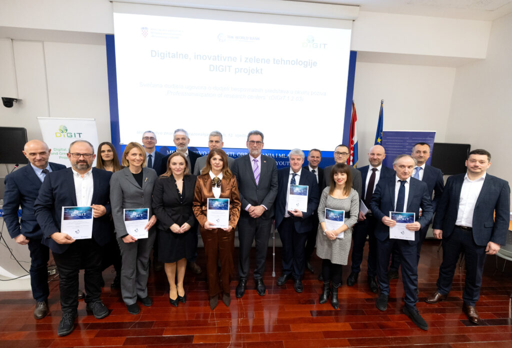 U ponedjeljak, 12. siječnja 2026. godine, u Velikoj dvorani Ministarstva znanosti, obrazovanja i mladih u Zagrebu, održana je svečana dodjela ugovora o dodjeli bespovratnih sredstava u sklopu poziva Professionalization of Research Centers, koji se provodi u okviru projekta Digitalne, inovativne i zelene tehnologije – DIGIT.