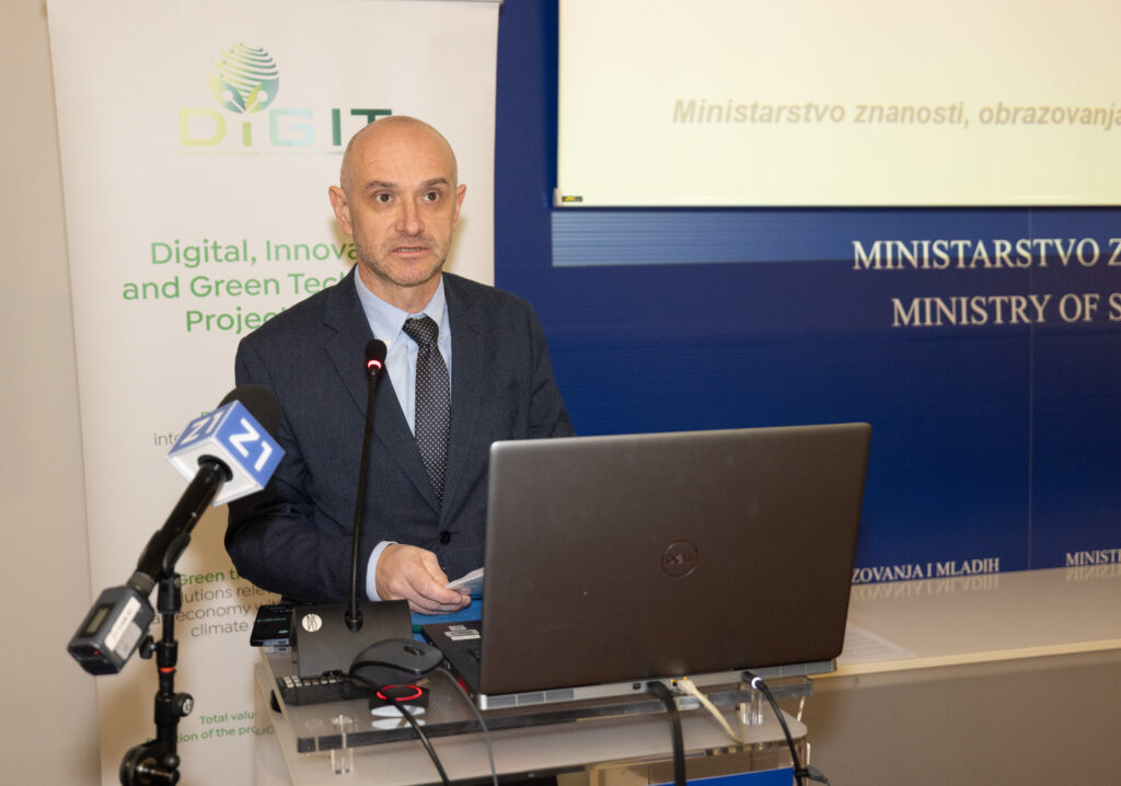 Projekt DIGIT – Digitalne, inovativne i zelene tehnologije jedna je od najvažnijih nacionalnih razvojnih inicijativa u području znanosti, istraživanja i inovacija u posljednjem desetljeću. Provodi se uz potporu Svjetske banke, a usmjeren je na jačanje istraživačko-inovacijske sposobnosti Hrvatske uz institucionalne reforme, modernizaciju upravljanja i poticanje suradnje između znanstvenoga i poslovnoga sektora.